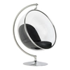Fotel wiszący BUBBLE poduszka czarna - korpus akryl, poduszka wełna