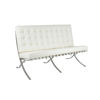 Sofa dwuosobowa BARCELON PRESTIGE PLUS biała - włoska skóra naturalna, stal