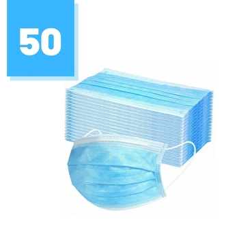 Zestaw 50 szt. - Maski trójwarstwowe ochronne do użytku cywilnego i medycznego z elastycznymi gumkami