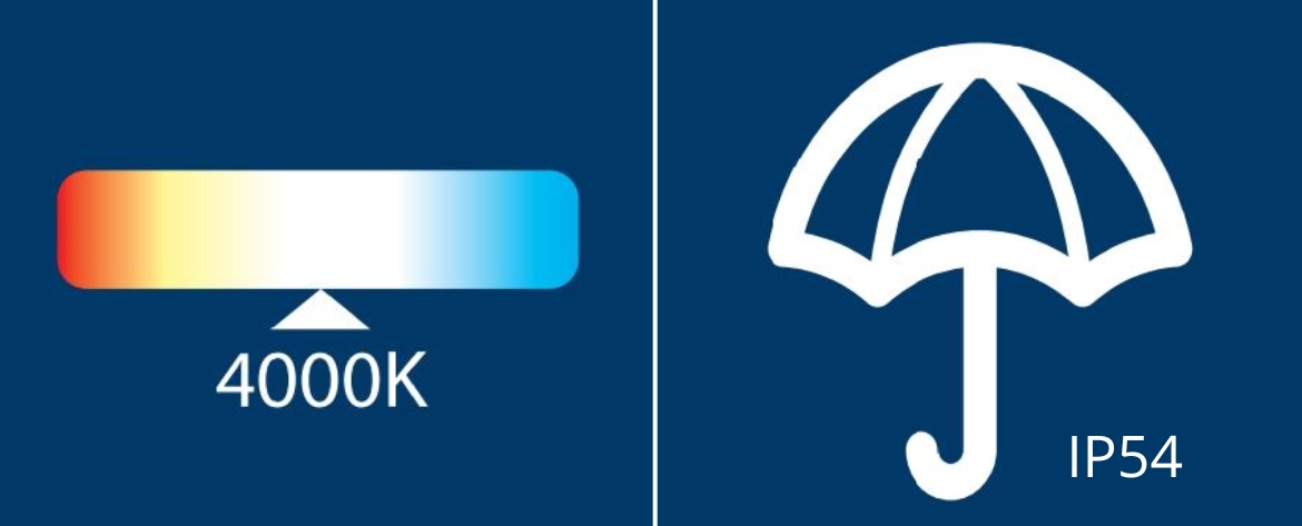 Naturalne białe światło 4000-4500K eliminuje zmęczenie oczu podczas i najbardziej przypomina światło słoneczne.