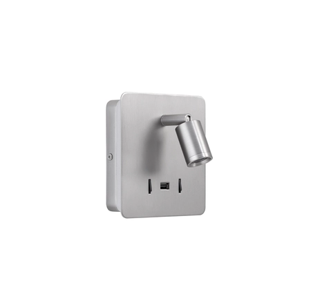 Lampa ścienna ROMEA nikiel mat LED 3W+5W 3000K + USB A, 2x włącznik
