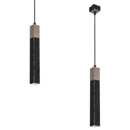 Milagro Lampa wisząca SOLO SAWN BLACK / PATINATED WOOD 1x mini GU10 MLP7469 PRZECIERANY CZARNY / DREWNO PATYNOWANE